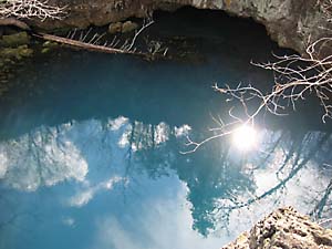 ここは高さ10m位のポッカリ開いた穴の底にあり、他の泉とは違った雰囲気だった。