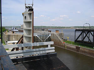 手前側の水面よりも、ドック内の水面が高くなっているのが分かりますか?