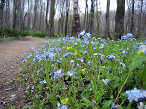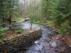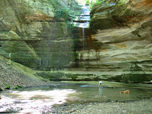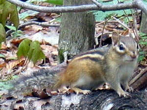 左のようなシマリスの道を歩いていくと、右のような滝に。