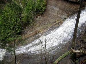 スケールは大きくないが、跳ねっ返りに削り取られて丸くなった受口が美しいMunising Falls。