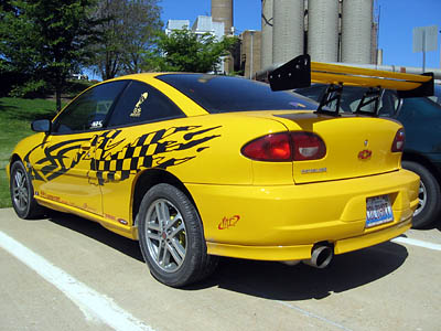 | リアはどんなもんでしょう。あまり魅力的とは言えませんが、横方向に巨大化したシボレーマークがキーポイントになっています。全体的にみて、学生が乗る車としてはかなりいい線いってるんじゃないでしょうか。 | ![]() |
